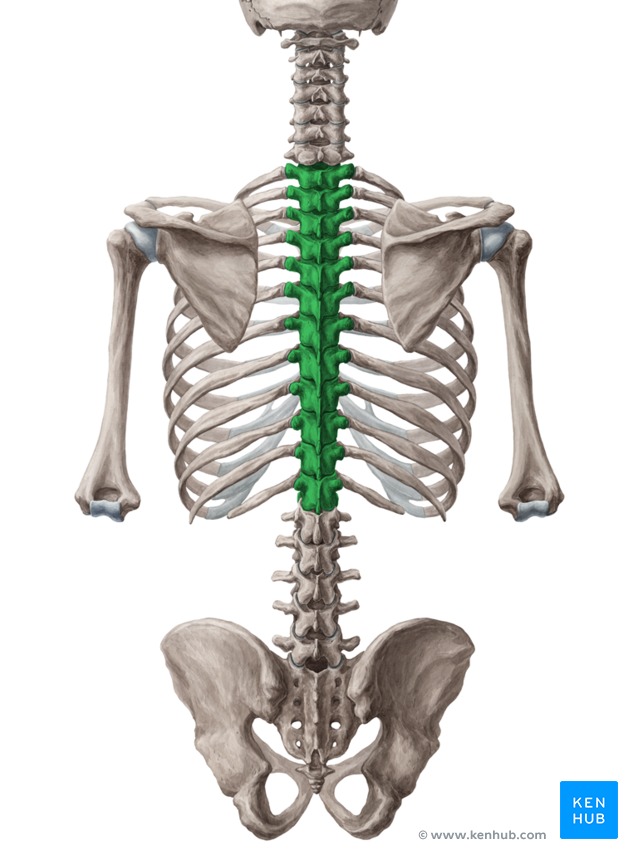 I hope that you are feeling alright and happy too, for me I am fine .Today I will like to share with you something about thoracic vertebrae ;The thoracic vertebrae are located in the middle section of the vertebral column, specifically inferior to the cervical vertebrae and superior to the lumbar vertebrae. These vertebrae span the large majority of the chest cavity area.