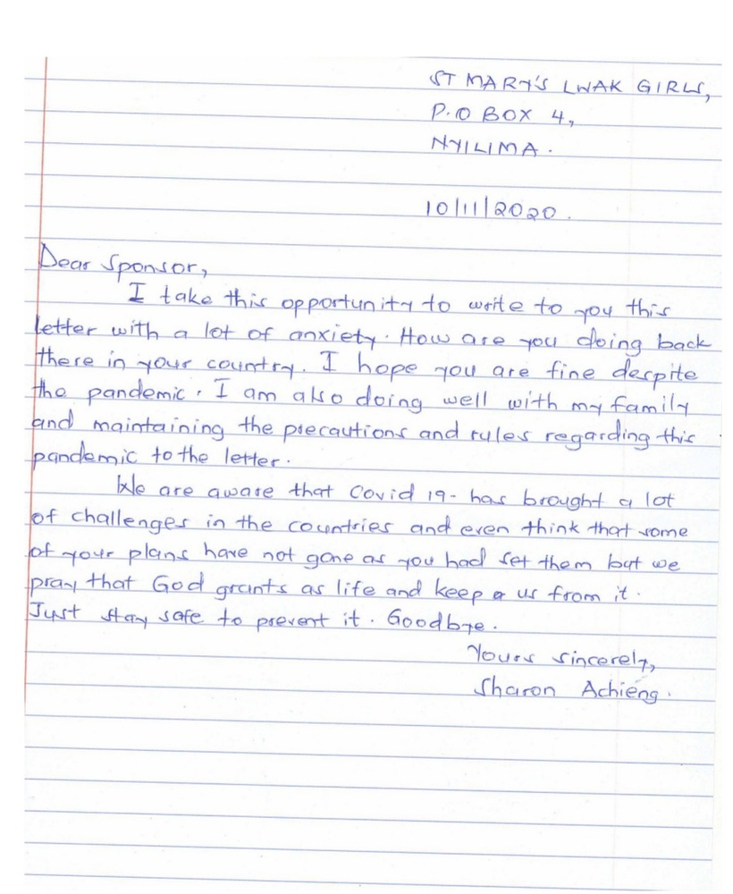 I am doing well in school and this has been made possible by your continued support because I have never been sent home for school fees. Thank you for propelling me closer to my dreams!